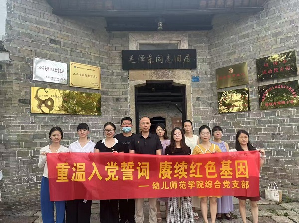 6月29日,幼儿师范学院综合党支部全体党员来到樟树市毛泽东同志旧居参观学习,通过听讲解、观图片、看实物,感受毛泽东同志等老一辈无产阶级革命家伟大的革命精神和不朽的人格魅力,感悟共产党人的初心使命。参观结束时,全体党员同志在旧居前,面对鲜红的党旗,举行了党员宣誓仪式,重温入党誓词,传承红色基因、赓续红色血脉。