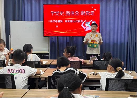 活动现场,志愿者首先向参加活动的小朋友们介绍了本次活动的主题内容,并对课程进行讲解。在场的小朋友们不仅认真的聆听老师讲述,更是积极举手回答老师们提出的问题。他们或涂或画、或描或书,用稚嫩的笔触描绘着对党、对祖国的爱,活动现场氛围积极而热烈。