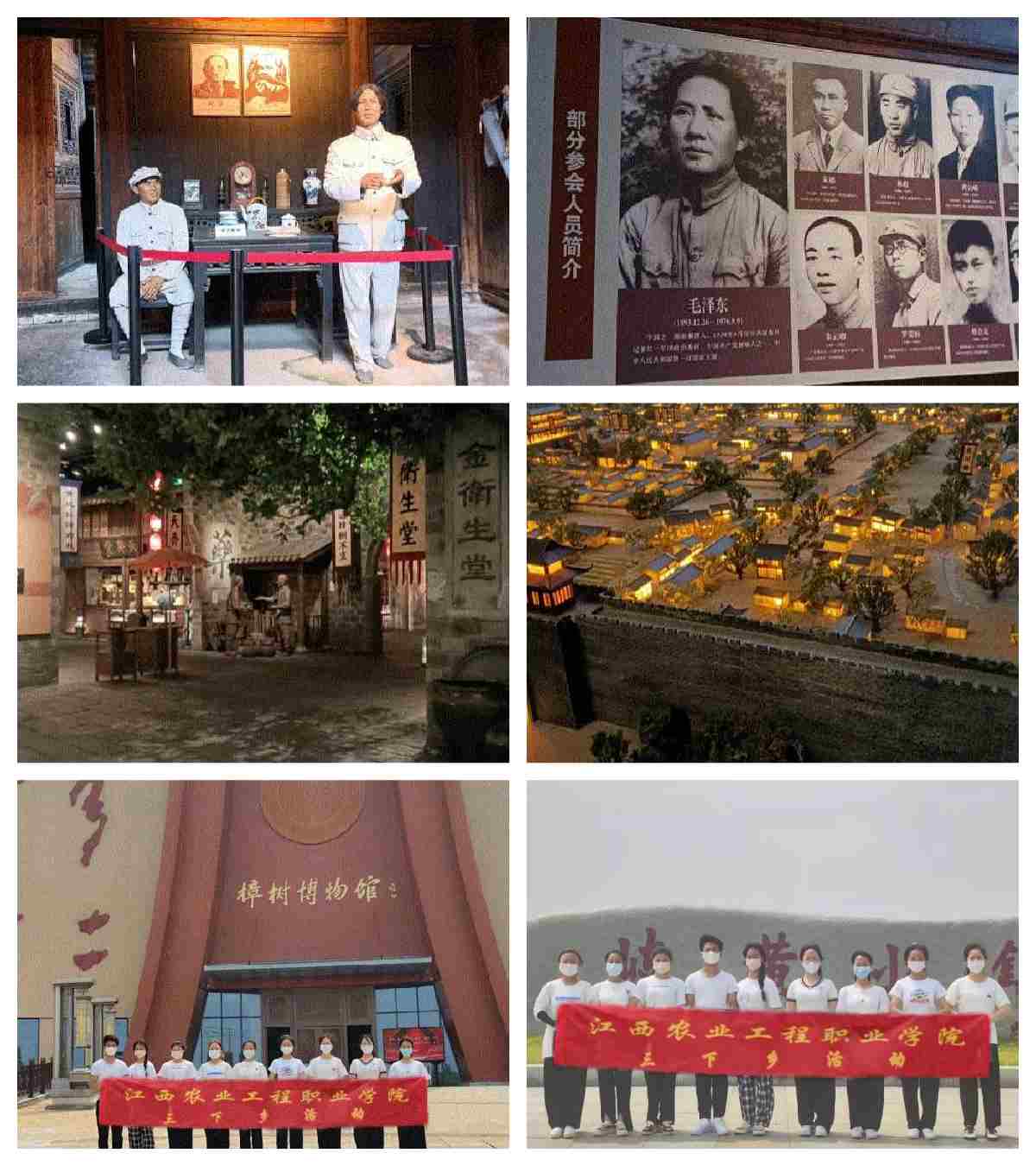 在本次“三下乡”的活动中,江西农业工程职业学院“喜迎二十大 永远跟党走 奋进新征程”党史学习教育团主要前往四个地方开展社会实践,包括毛泽东故居、樟树市博物馆、金太阳居家养老服务中心、岐黄小镇。在老师的带领下,依托各地红色资源,开展重走读红色足迹、追溯红色记忆、访谈红色人物、挖掘红色故事,体悟红色文化等多种形式活动,推进党史学习教育常态化长效化,引导青年学生学史明理、学史崇德、学史力行。