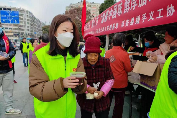 “时代呼唤担当,民族振兴是青年的责任。”在这个寒假,我积极响应返家乡社会实践的号召,以乐安援手义工协会志愿者的身份,参与了“温馨中国味 醇厚腊八情”全民品粥活动与助力春运暖冬行动。这段宝贵经历,让我深刻领悟到志愿服务的意义,也让我在奉献中收获成长。 腊八节,活动现场热闹极了。大锅里腊八粥热气蒸腾,保温箱里的馒头鸡蛋香气弥漫。我和志愿者们早早到场,为市民盛粥并递上鸡蛋与馒头。一碗碗粥递出,看着大家脸上的笑容,听着声声感谢,我心里暖烘烘的。一位大爷接过粥,竖起大拇指:“你们年轻人真棒,让我们感受到节日氛围和社会关爱!”这让我明白,传承传统节日文化,要靠实实在在的行动。
