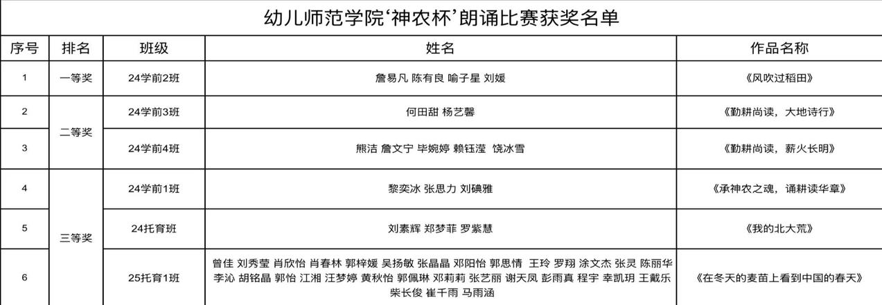 比赛时,选手们紧密围绕“勤耕尚读”主题,以慷慨激昂的篇章、饱满的情感,将无声的文字化为动人的视听盛宴。每一位参赛者都用声音为古老农耕文化赋予了新的生命力,赢得了台下听众的阵阵掌声。以下为此次比赛的获奖名单。