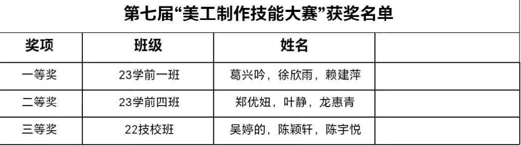 美工制作技能大赛获奖名单