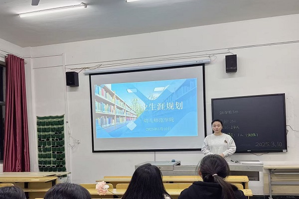 为深入贯彻落实党的二十大精神和学院关于就业工作的文件部署,促进学生成长成才,3月13日,幼儿师范学院中层干部来到24级新生班级,宣讲职业生涯规划和就业工作。
