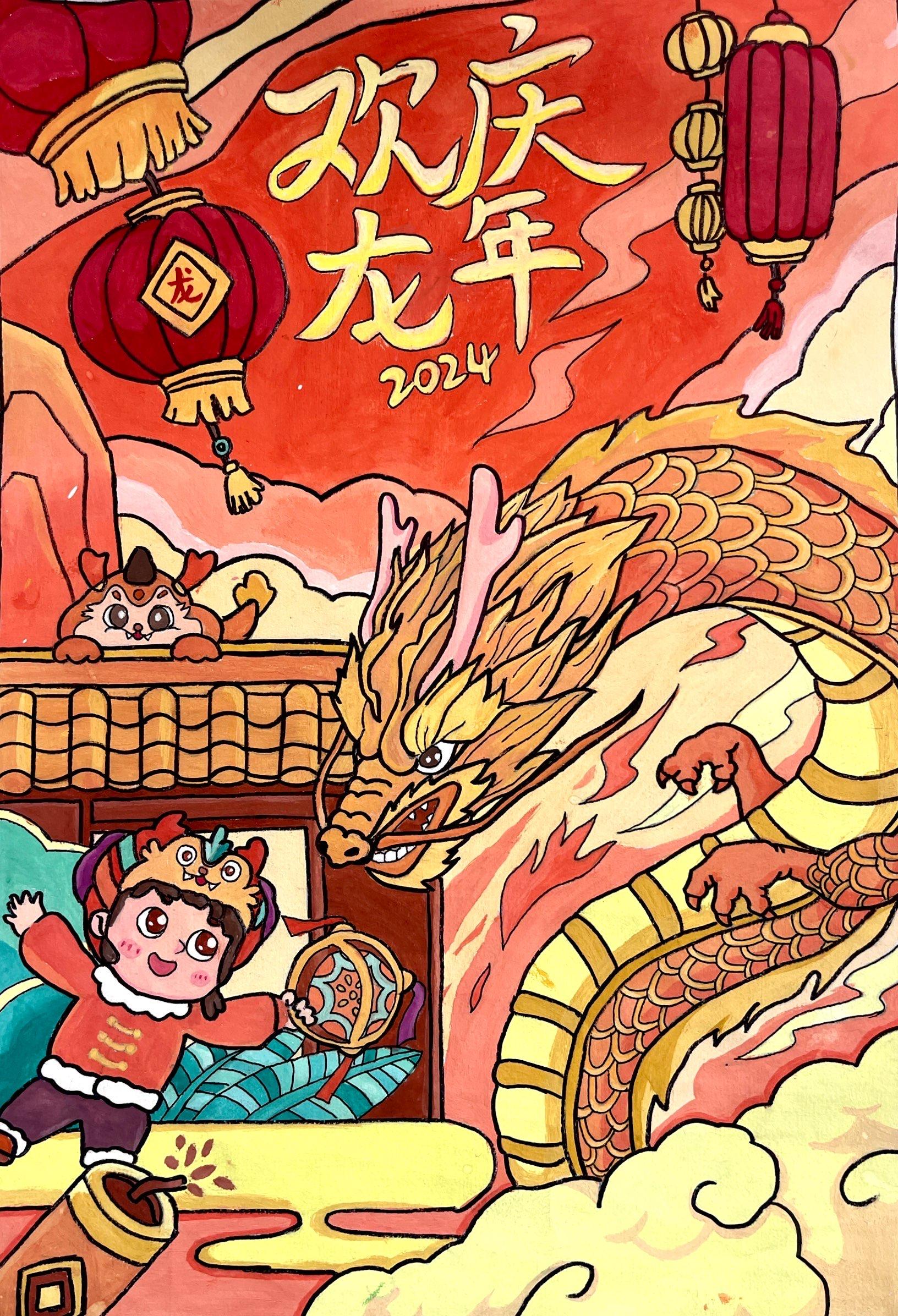 23学前四班 毛贞慧 《欢庆龍年》 绘画