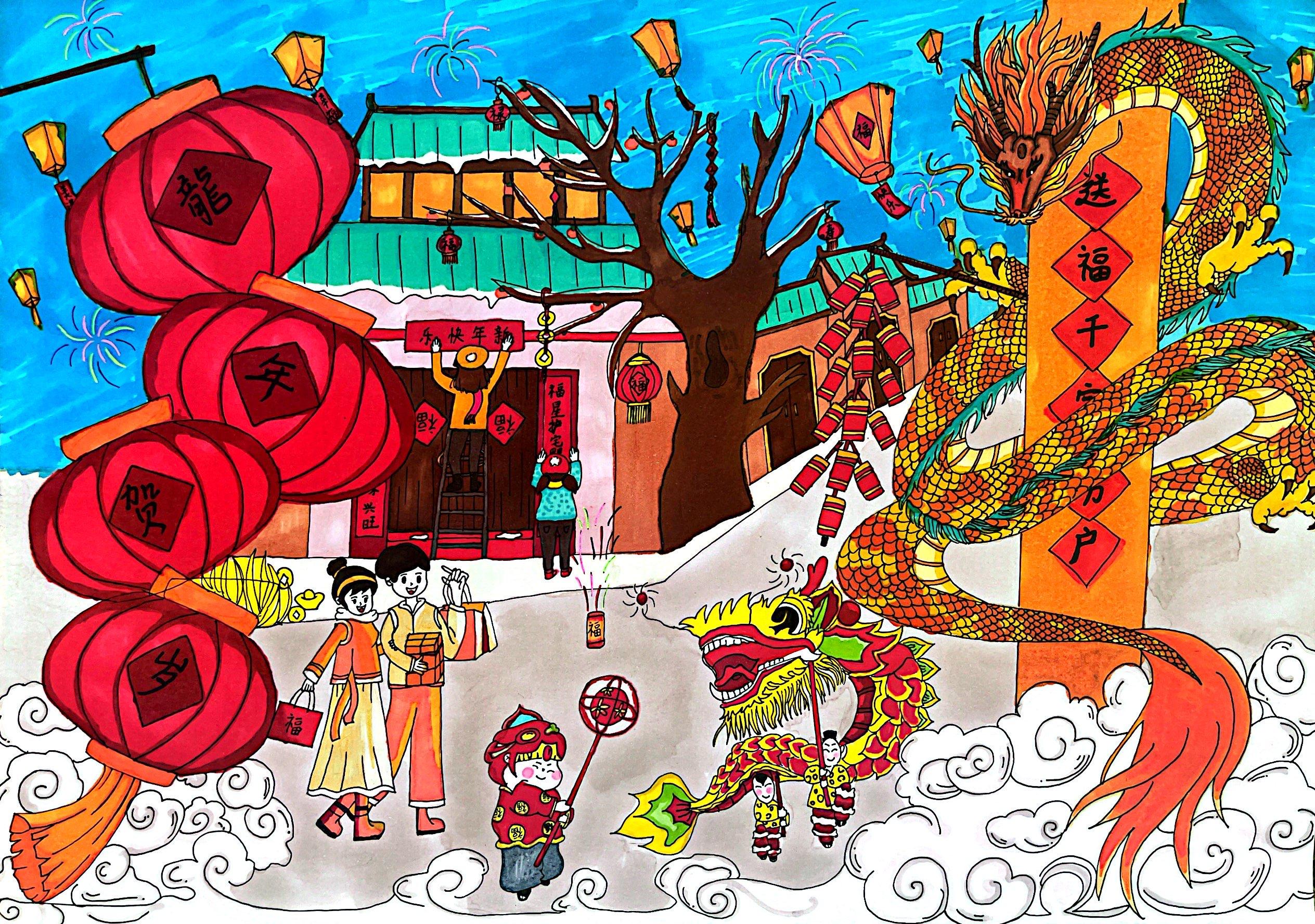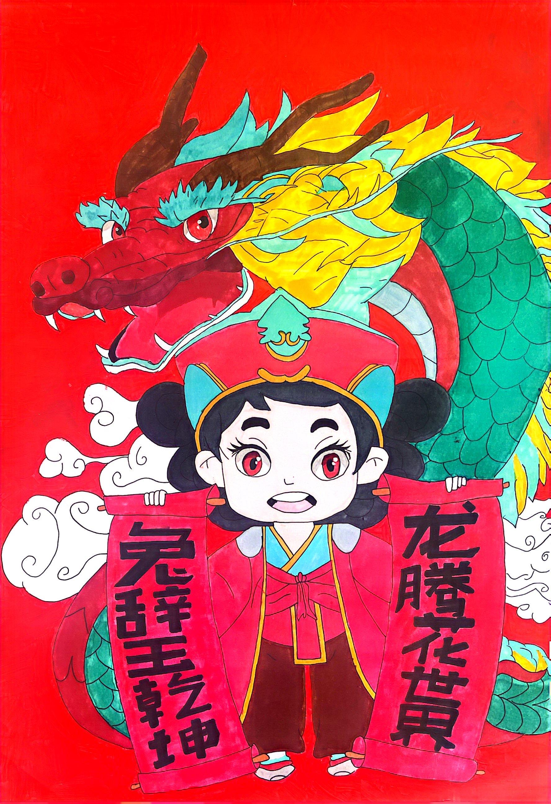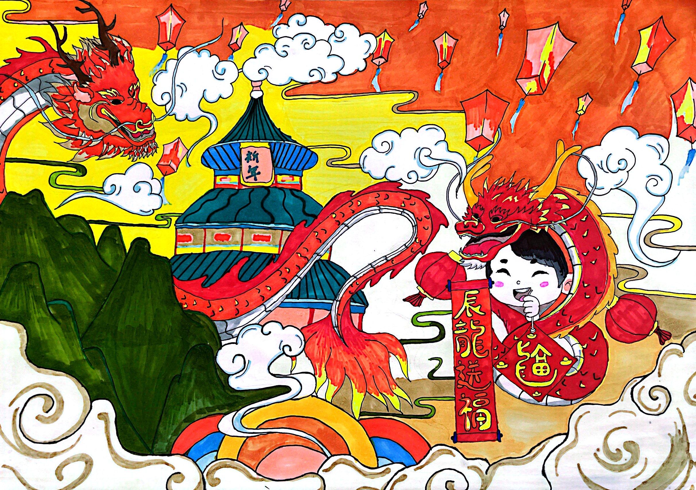 22学前三班 萧金艳 《龙腾喜庆·传统龙年》 绘画