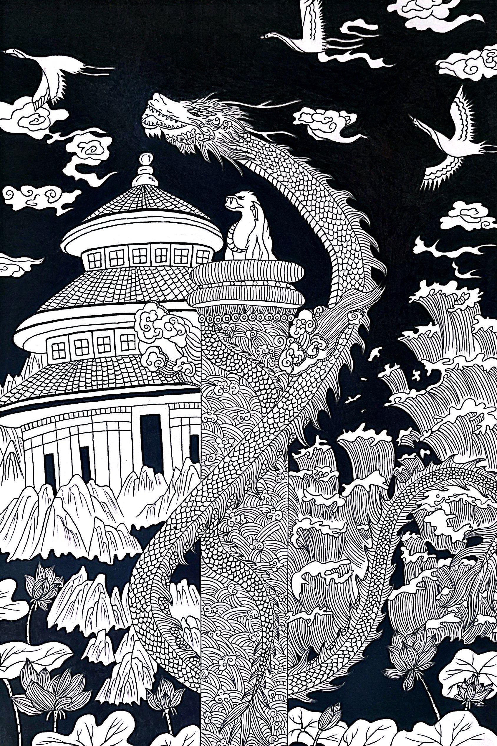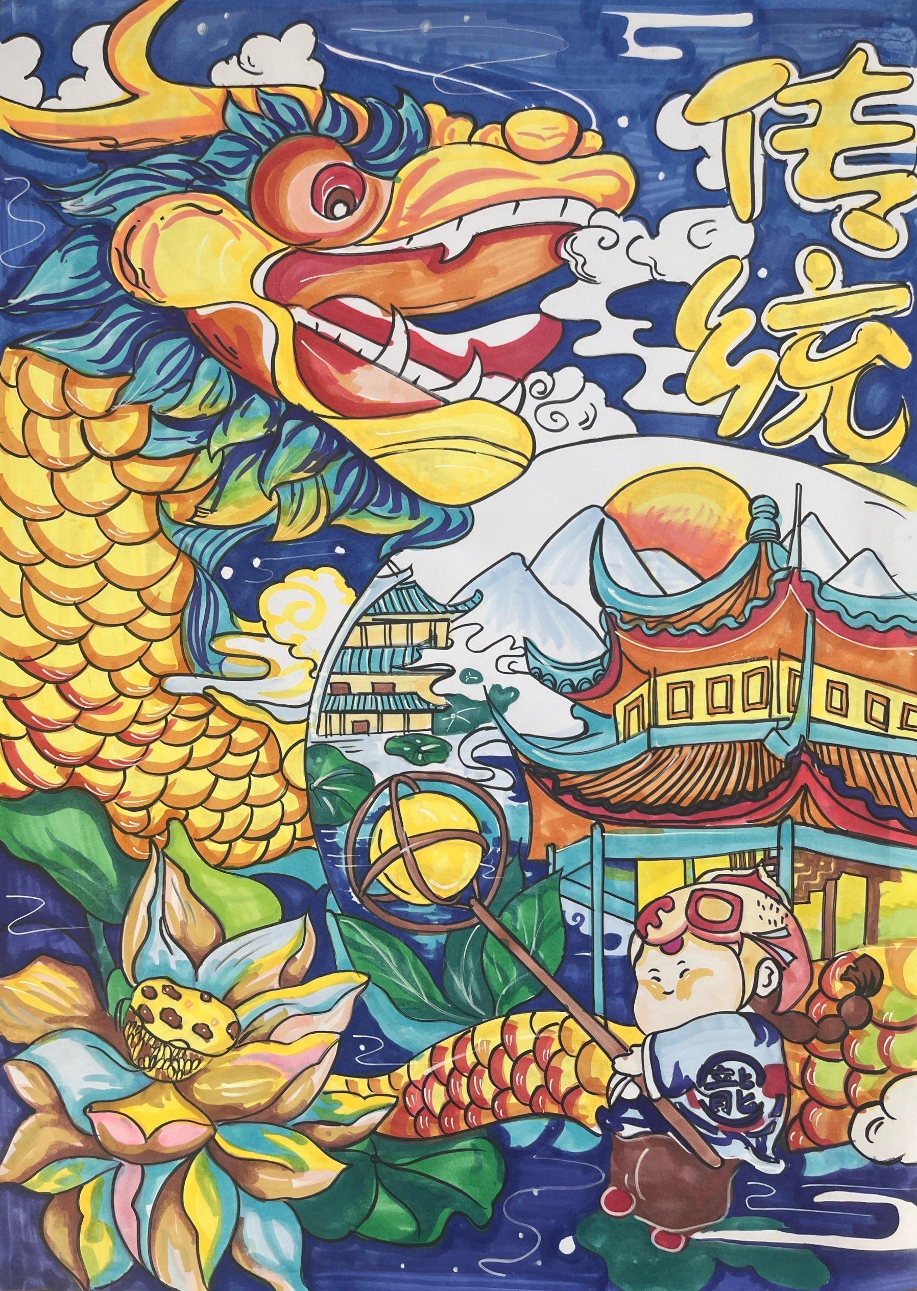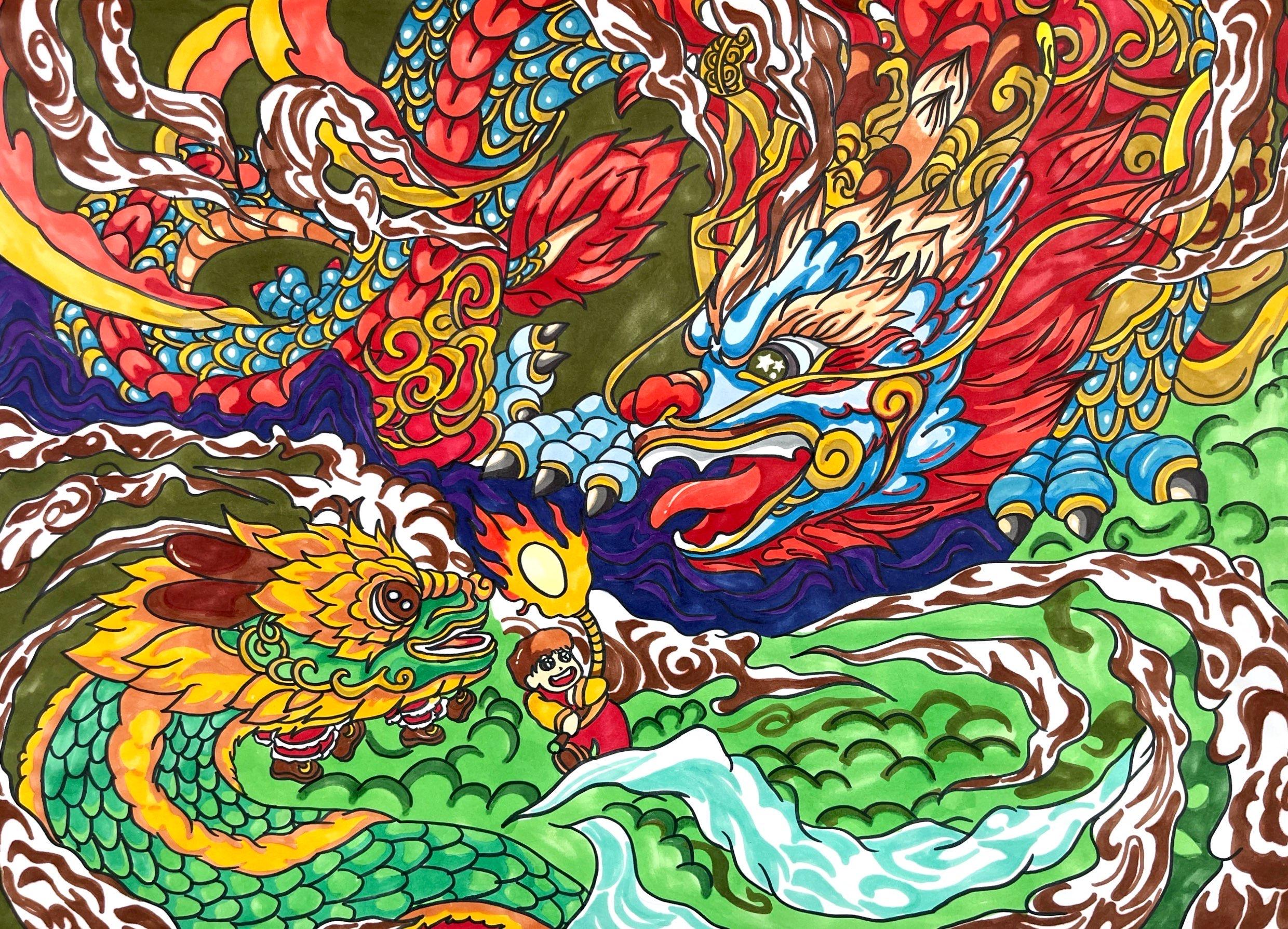 20五年幼管一班 杨涵 《龙骄云霄·华彩古韵》 绘画