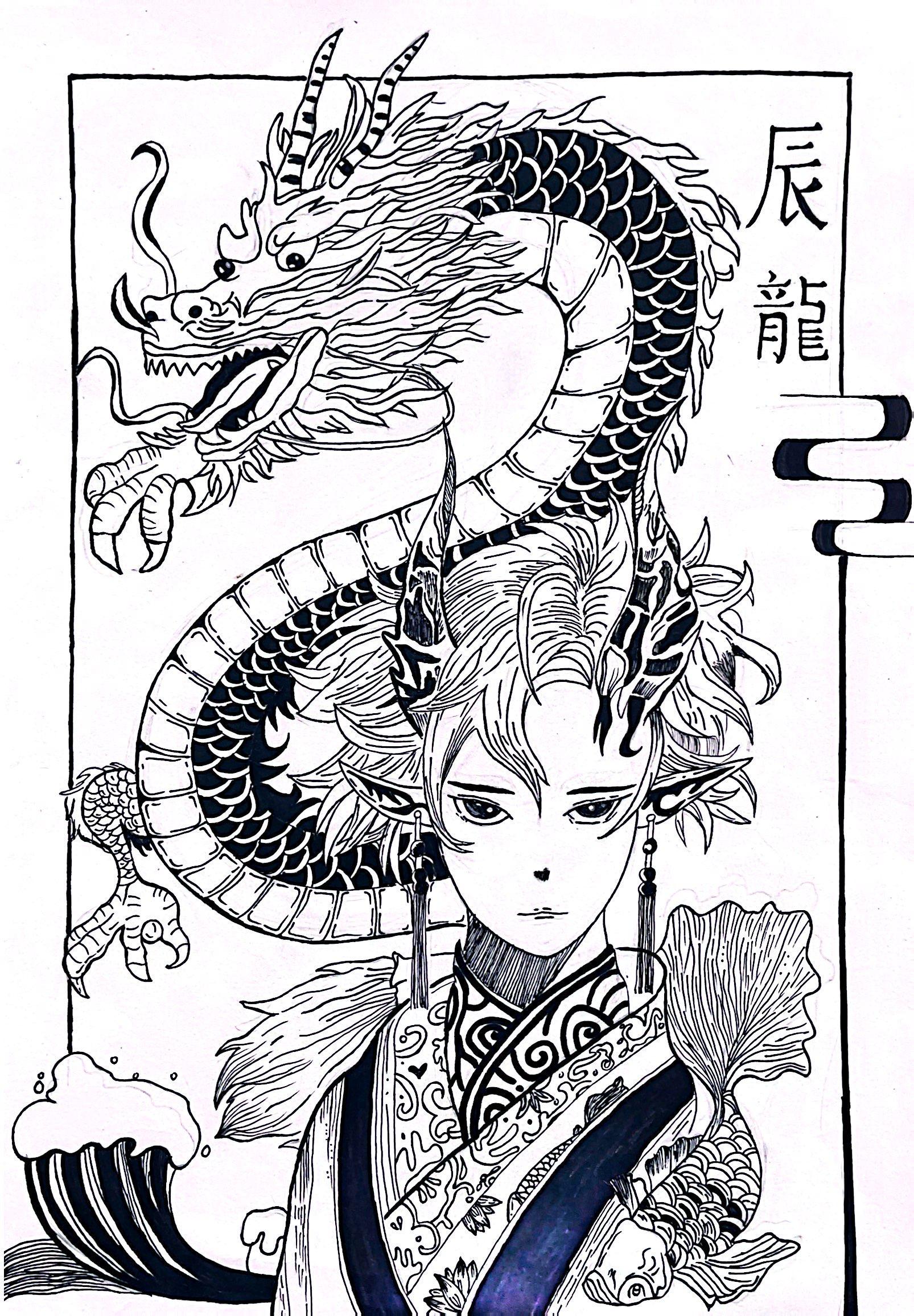 20五年幼管一班 黄子怡 《龙与少年》 绘画